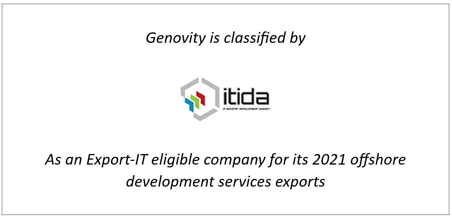 As the first phase, Genovity is focusing on providing world-class offshore software services to international clients around the world. Genovity is considered one of the active members of the MCIT-ITIDA’s Export-IT program since 2021: